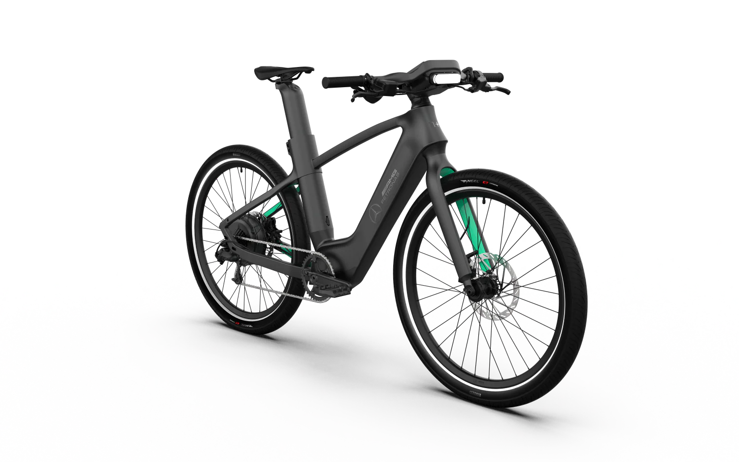 Crafted with a premium Mercedes-AMG aluminum frame, the bike reflects the sleek aerodynamic styling of the Mercedes-AMG PETRONAS Formula One Team.
